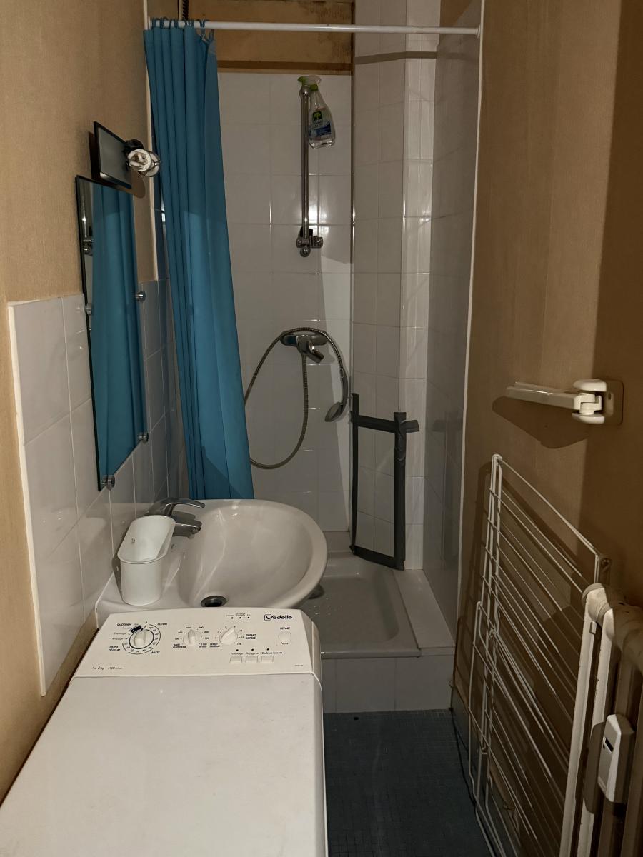 Située au deuxième étage sans ascenseur, le studio comprend une pièce principale avec une cuisine équipée, une salle d'eau avec lavabo et une machine à laver et un WC séparé.