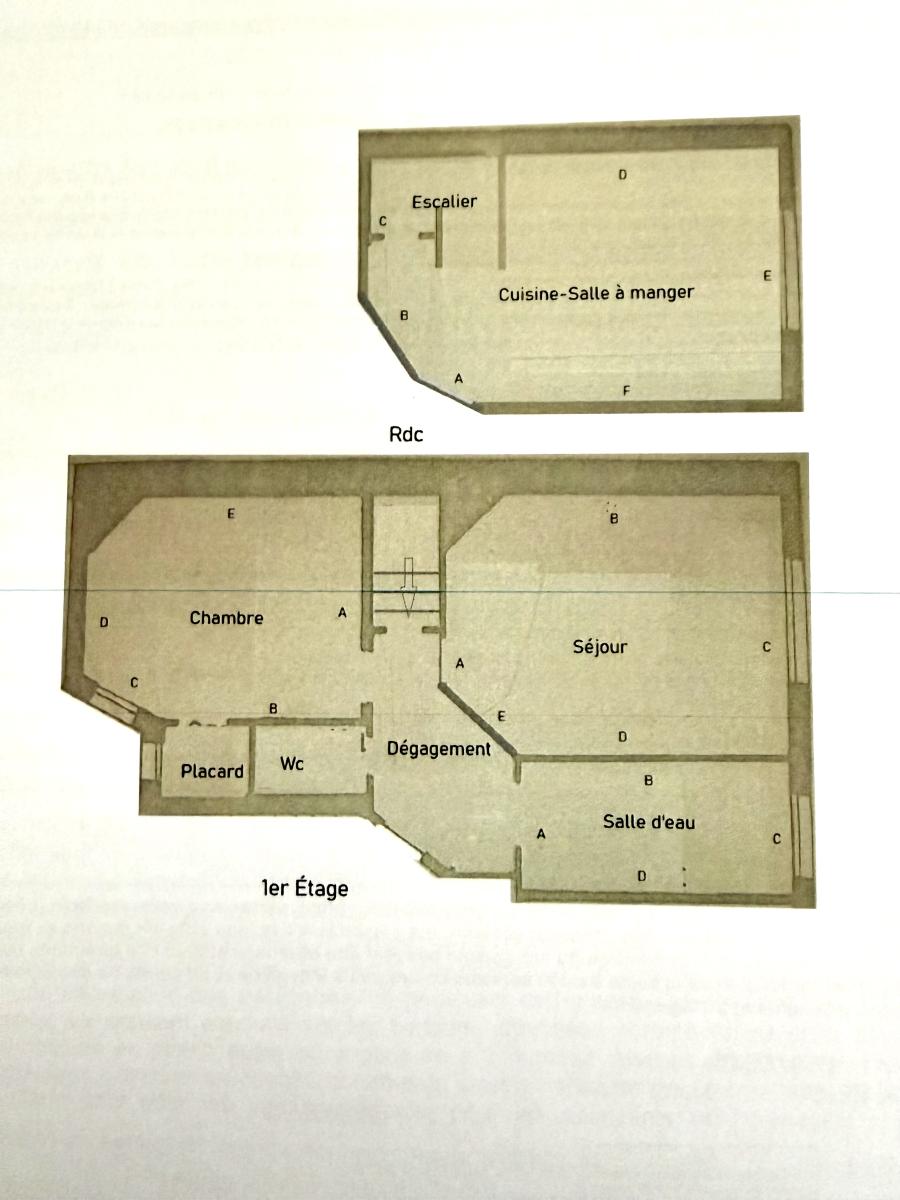 Au premier étage, un séjour (ou une chambre) une salle d'eau, un WC séparé, une chambre sur cour, placard.